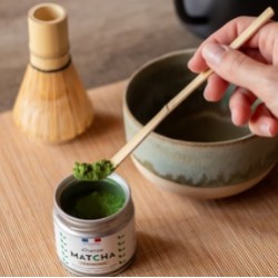 C'est en 2018, après avoir parcouru les plantations du pays du soleil levant et rencontré de nombreux fermiers, que Camille déniche la perle rare sur les hauteurs de Nishio. Son objectif : importer en France un matcha d'exception, à contre-courant des produits de basse qualité souvent amers. Elle sélectionne des thés doux, savoureux et sans amertume, parfaitement adaptés au palais des amateurs de finesse.